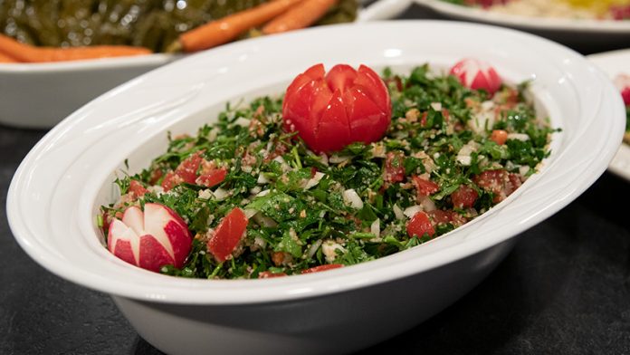 - Pica el perejil, el tomate, la cebolla y las cebollas verdes, y mezcla en un tazón grande.
